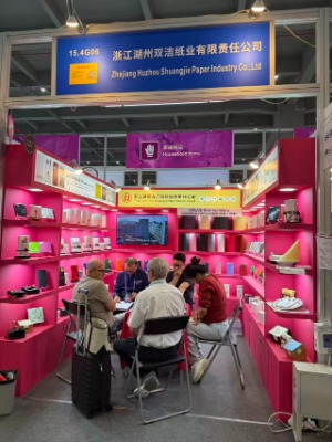 Le linn an taispeántais, chuir Zhejiang Huzhou Shuangjie Paper Co., Ltd raon leathan táirgí i láthair, lena n-áirítear naipcíní ard-deireadh, fíocháin aghaidhe, agus míreanna páipéir airleagtha, rud a léirigh neart na cuideachta i gcáilíocht táirgí agus i dteicneolaíocht táirgthe araon. Mhol cuairteoirí dearadh fíorálainn, cáilíocht ábhair níos fearr, agus cur chuige neamhdhíobhálach don chomhshaol de thairiscintí Shuangjie Paper.